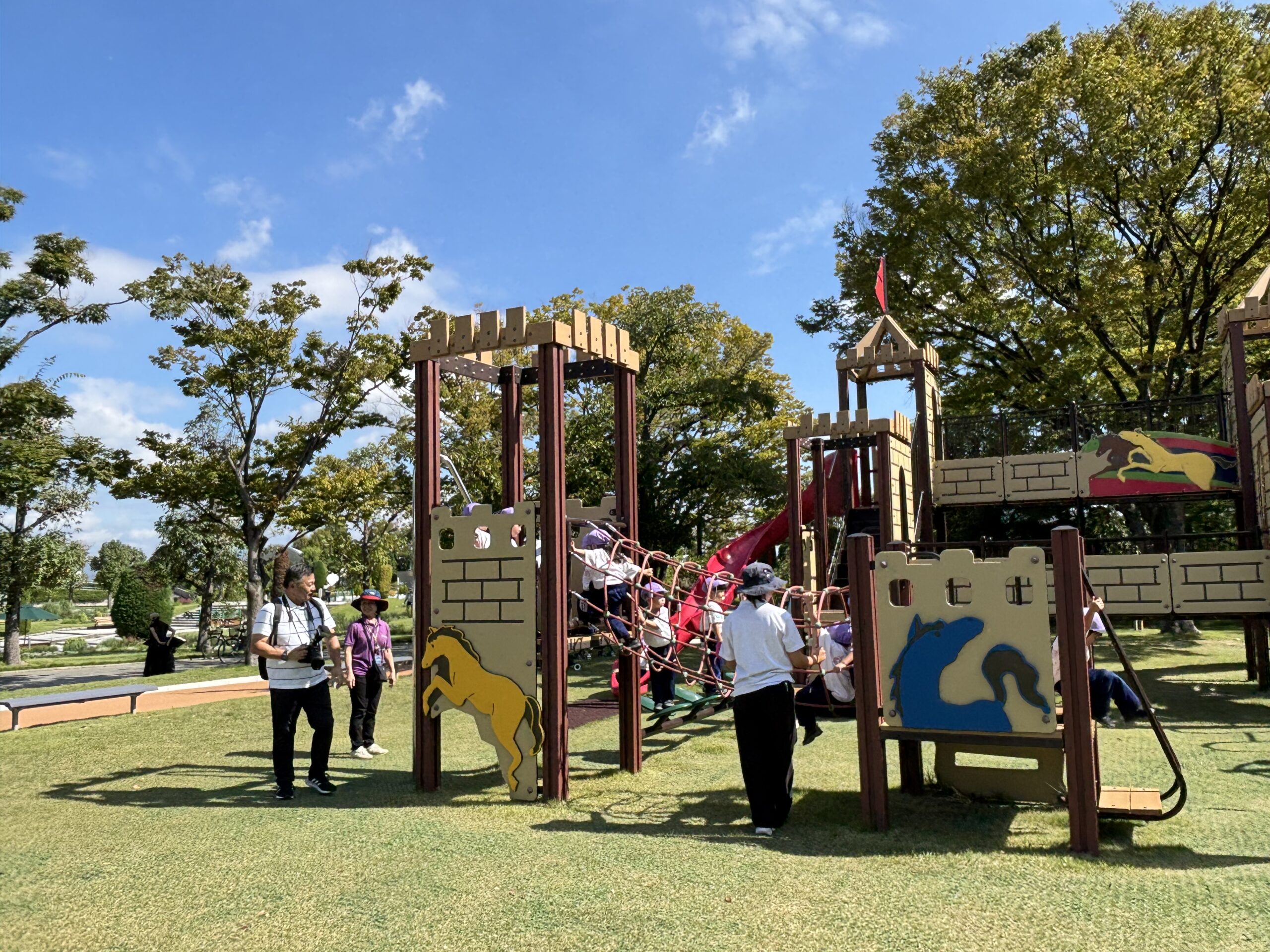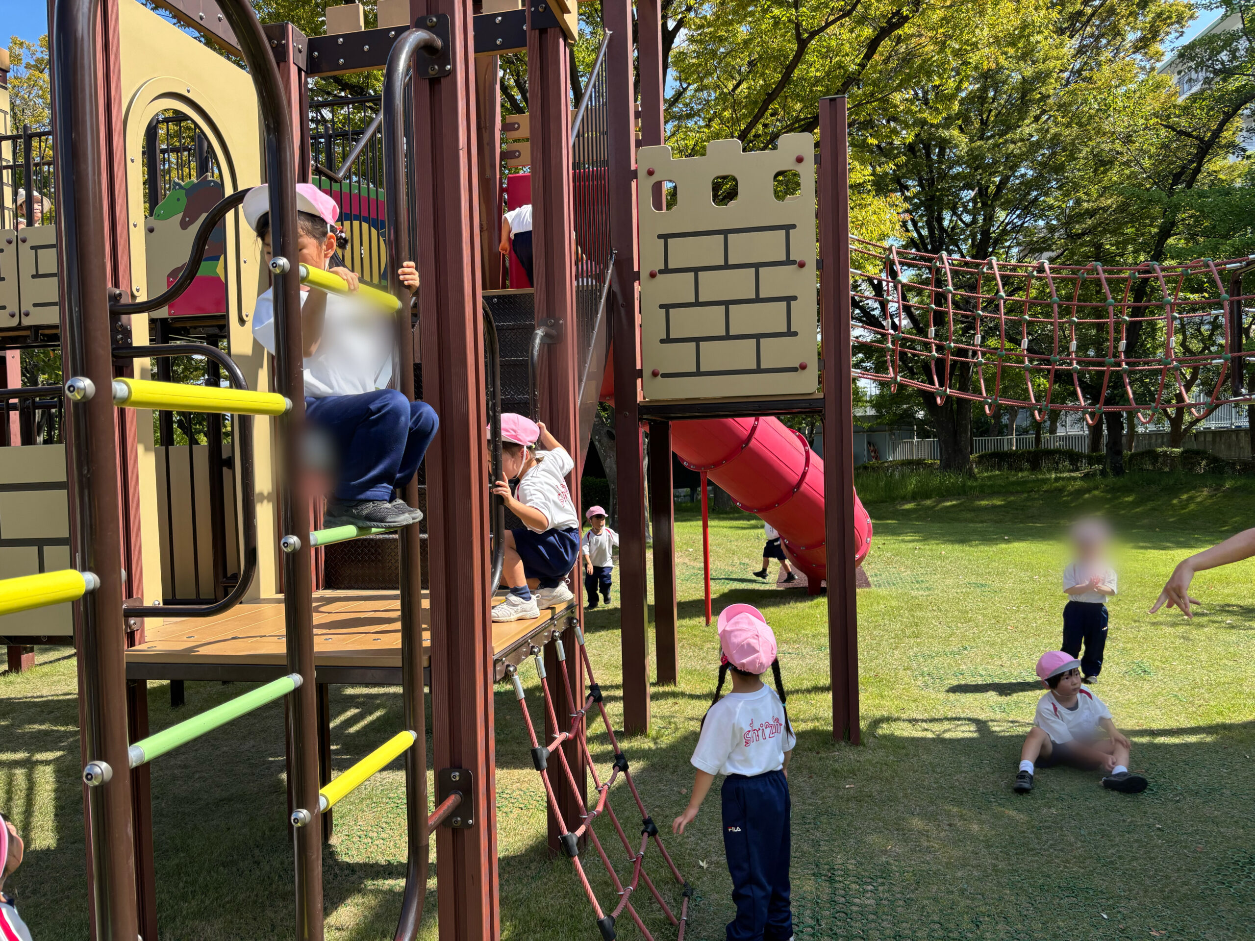 園庭よりも広くて、大きな遊具にみんな大喜びです。